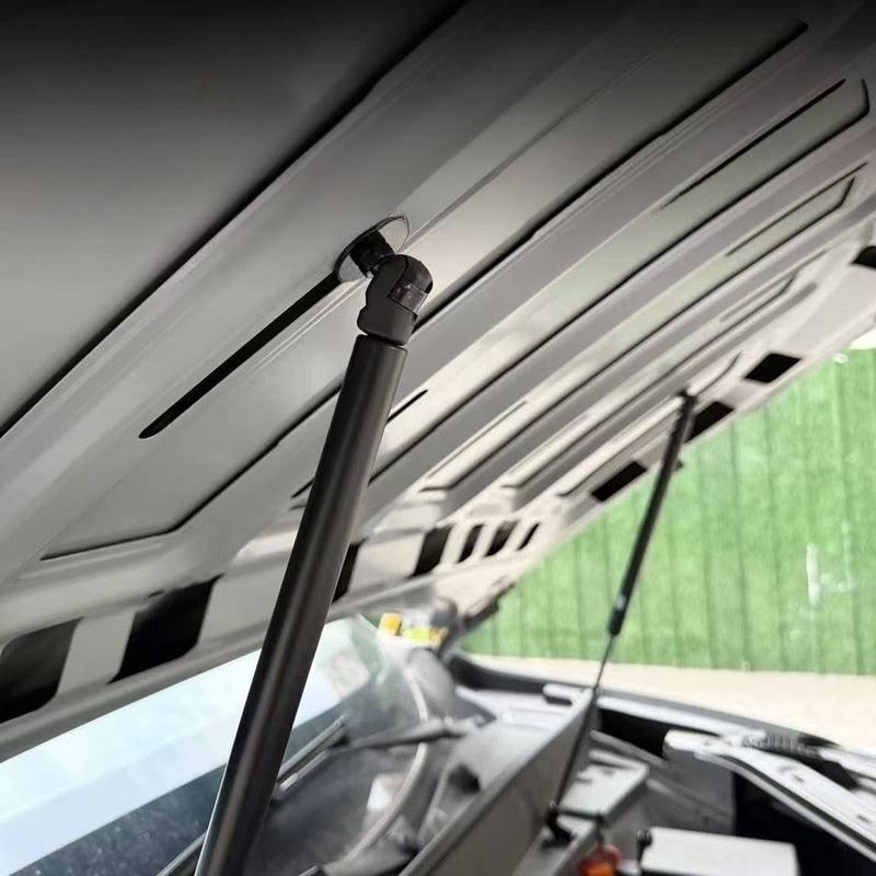 Air spring support arms for the front hood and hood increase lifting capacity, shock absorbing lift columns without abnormal noise and self-cleaning piston parts.