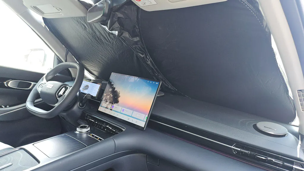 Fits the screen perfectly, and folds small enough to fit in draw under rear seat.